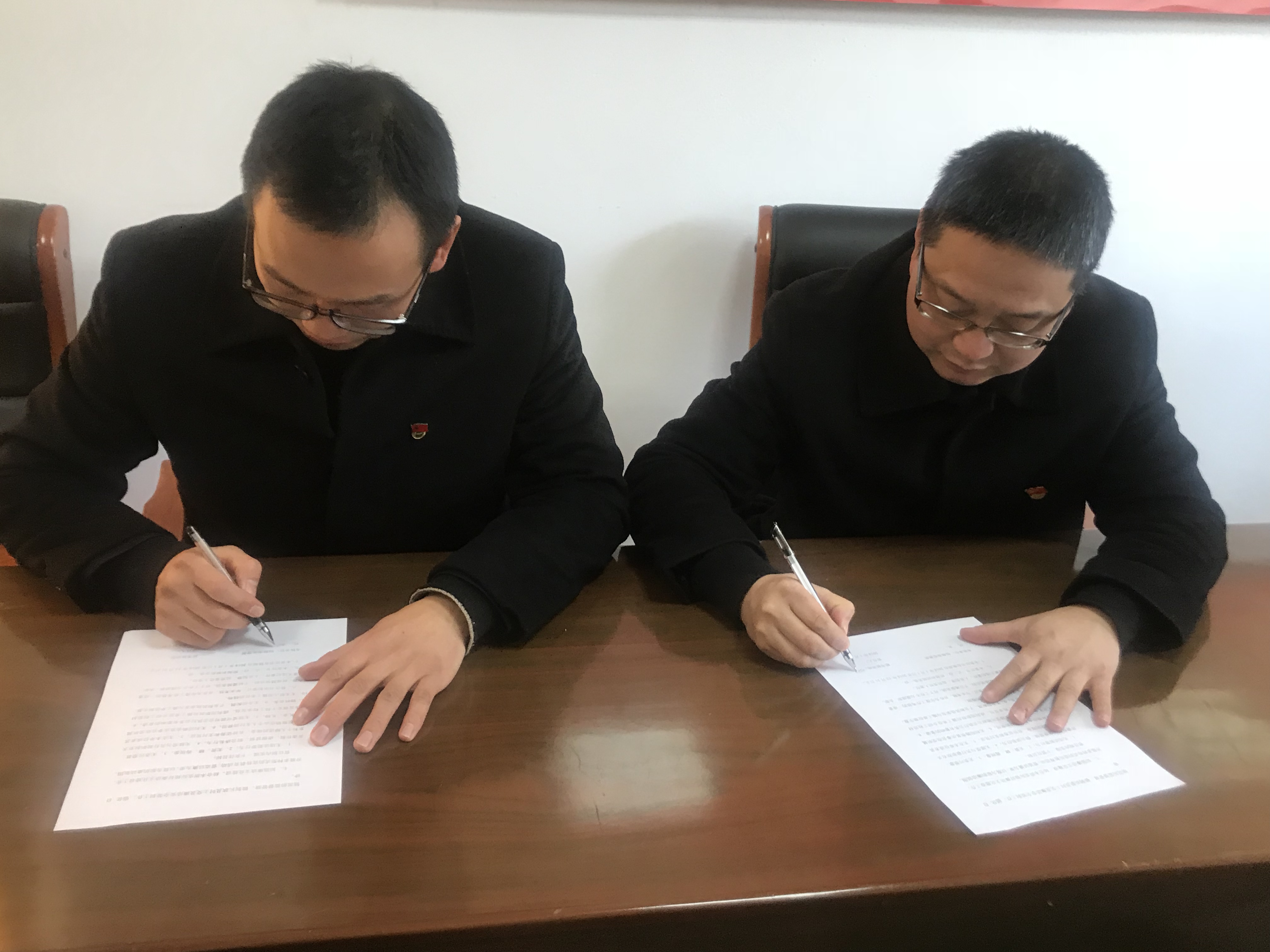 圖為黨支部書記與班長簽訂黨風廉政責任書