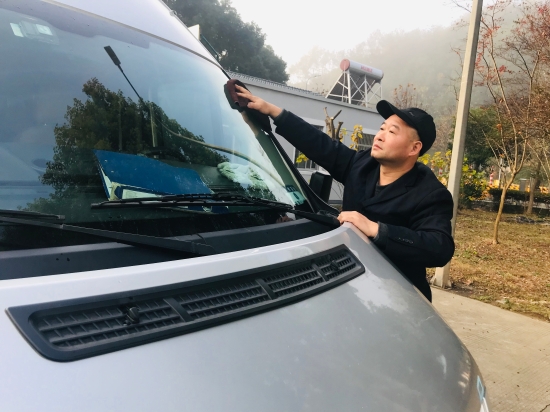 圖為楊堅日常工作照 自從退伍后,楊堅就加入了臺州高速公路的隊伍,走上接送車駕駛員的崗位。從那時起,這十五年來,他就立志努力成為一名優秀的駕駛員。 楊堅愛護接送車猶如愛自己的孩子一樣,每當送完中班同事上班,不論好天氣還是風天雪地,只要一到所里,第一件事必須是抓緊利用等下班同事的空余時間,對車輛進行檢查、擦洗,確保車輛安全衛生,尤其遇到下雨下雪時節,則需花更多時間才能清洗完畢。有人見他成天保養和擦洗車輛,就勸說他:“你呀,就是閑不住,車子沒必要天天擦吧。”可楊堅卻笑瞇瞇回答說:“雖然我主要負責接送同事上下班,但如果讓乘車人總感覺車里車外臟兮兮的,人家就是不講出來,我也覺著對不起乘車的人呀,我把車輛檢查保養好,設備維護好,這不是讓大家乘車時都有一個好心情嘛!”