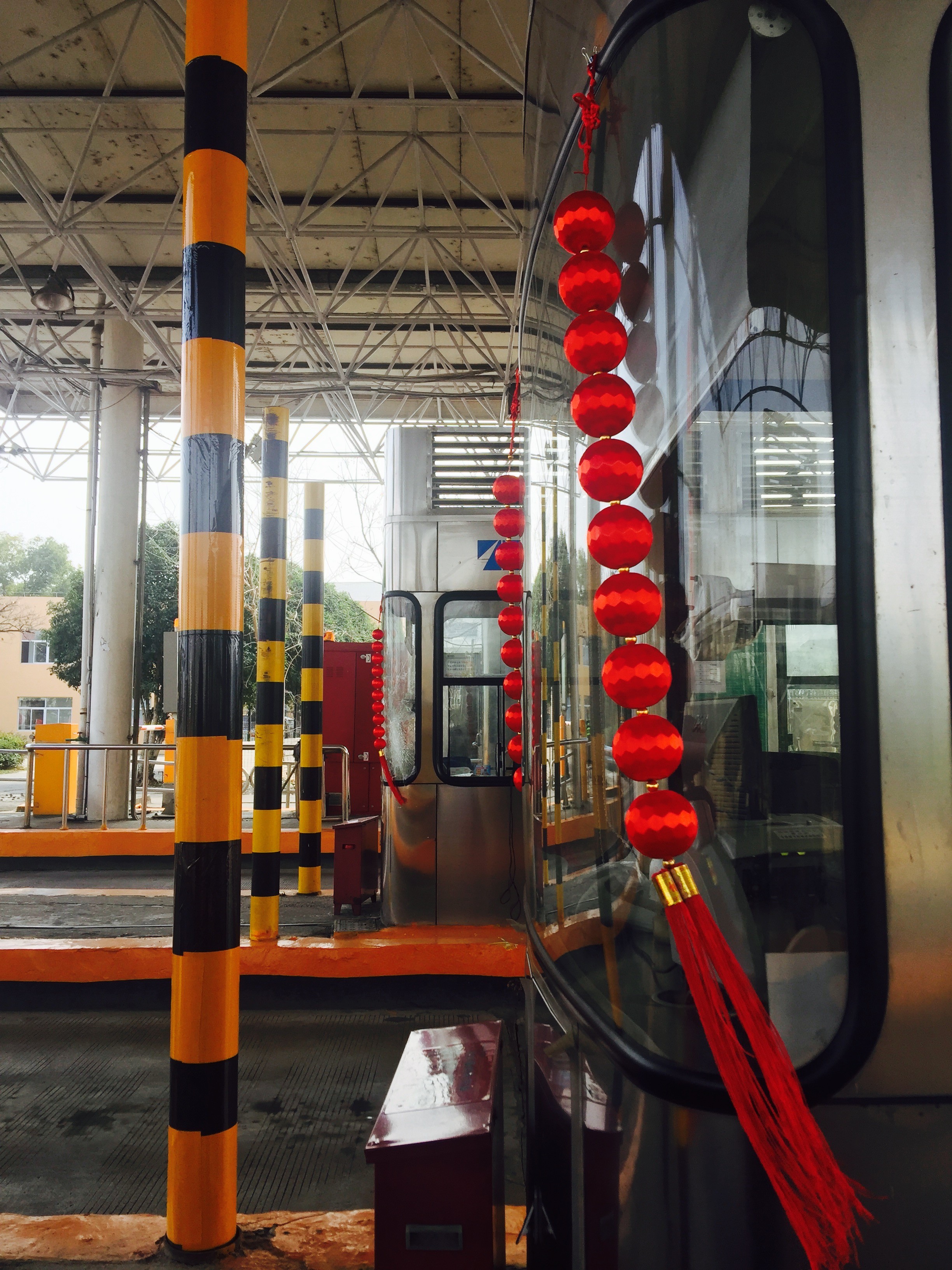 (圖為臺州南收費所崗亭懸掛的紅燈籠) 熟悉的工作環境,熟悉的工作內容,卻又因意義特殊的時間點而顯得特別,崗亭于前兩天就掛上了紅燈籠,隨著風吹拂燈籠發出撞擊玻璃的“咚咚”聲,讓除夕別有一番滋味,年味在喜慶中凸顯。
